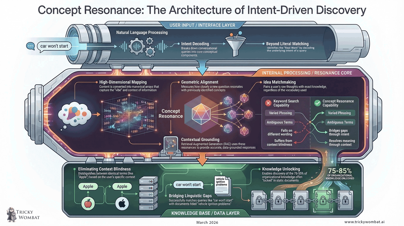 This layered approach to concept-level retrieval, what we use at Tricky Wombat, is the infrastructure that determines whether an organization's AI deployment produces reliable answers or plausible-sounding hallucinations.