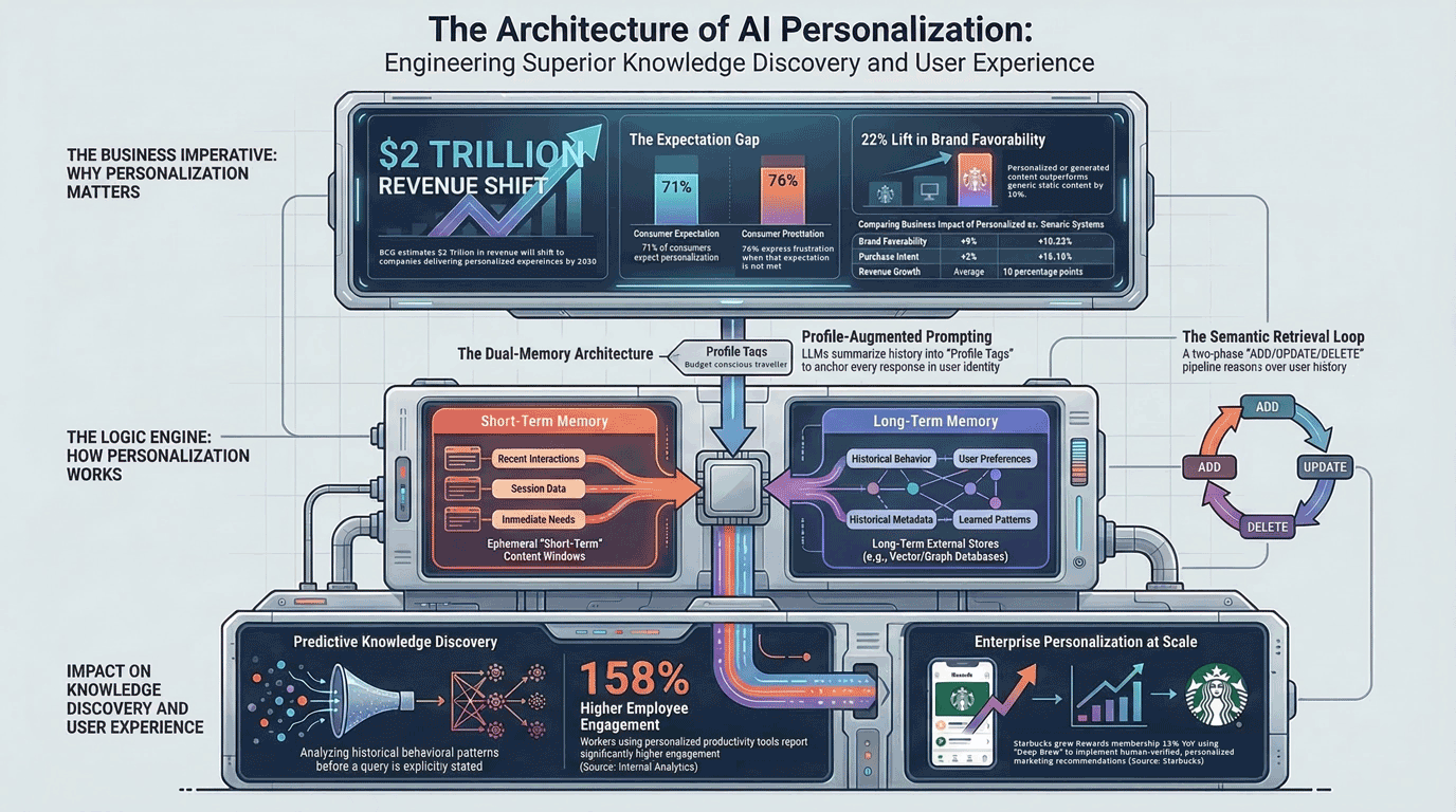 The revenue argument is straightforward. McKinsey found that companies leading in personalization generate 40% more revenue[6] from those activities than average performers. BCG quantified the total opportunity at $2 trillion shifting to companies that deliver personalized experiences over the next five years. These numbers describe the ceiling. The floor is defined by what happens without memory infrastructure.